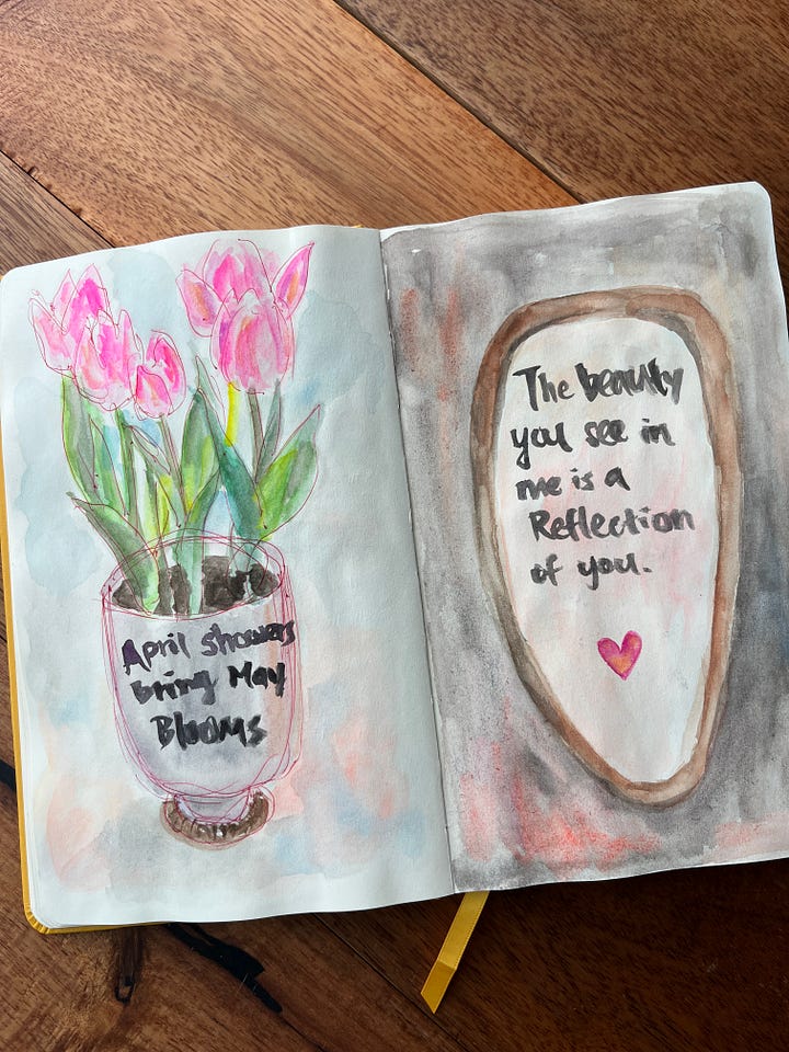 I noticed a shift almost immediately. Page after page, my sketchbook was filling up with a momentum I’ve never felt before. First in black and white, then in color. I started painting again - sometimes just adding splashes of watercolor to my journal pages, but it was enough. I was creating for the joy of it and not for any outcome.